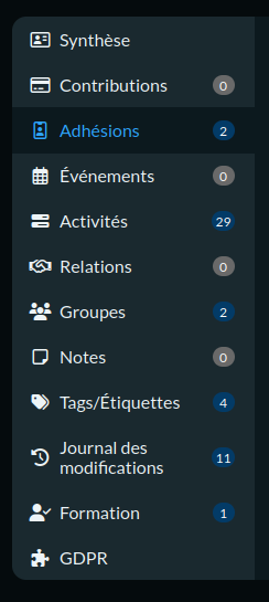 Si vous voyez dans la liste une adhésion pour l'année en cours, c'est que le contact avait déjà adhéré pour cette année !